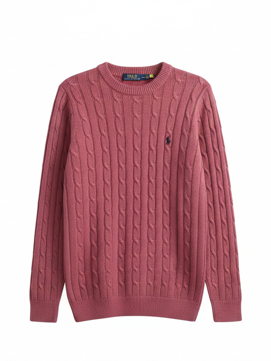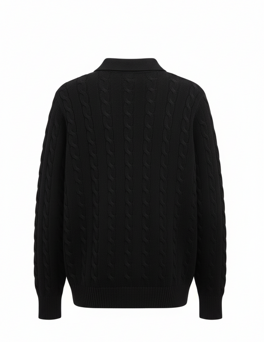 Polo Collar Cable-Knit Sweater – Timeless Winter Elegance
